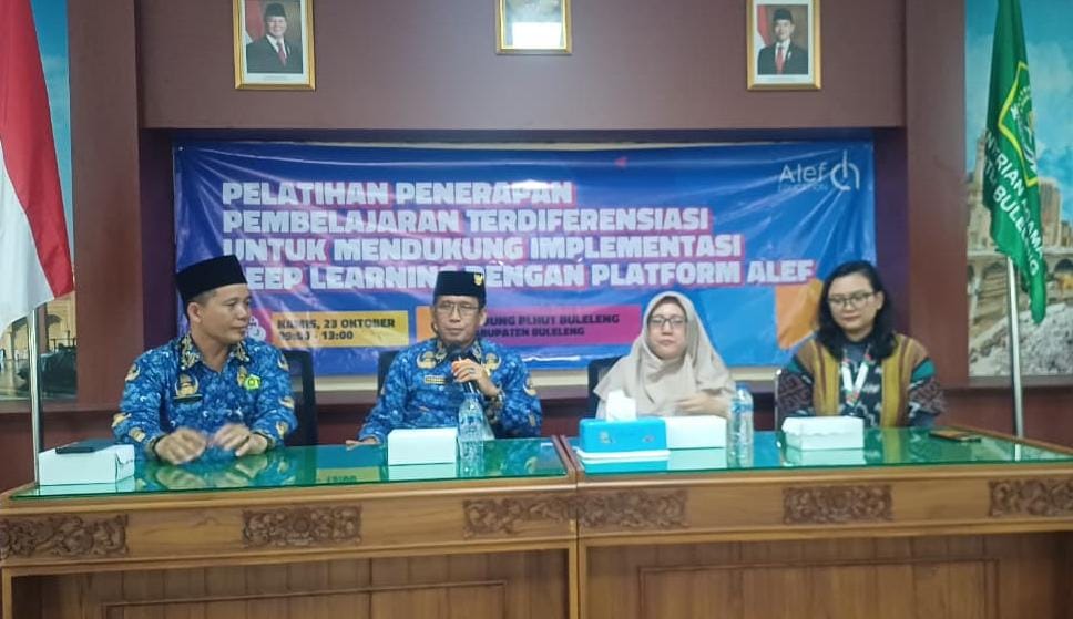 Kepala Kantor Kemenag Buleleng I Gede Sumarawan didampingi Seksi Pendidikan Islam Lewa Karma, secara resmi membuka kegiatan Pelatihan Penerapan Pembelajaran Terdiferensiasi untuk Mendukung Implementasi Deep Learning dengan Platform Alef Education.